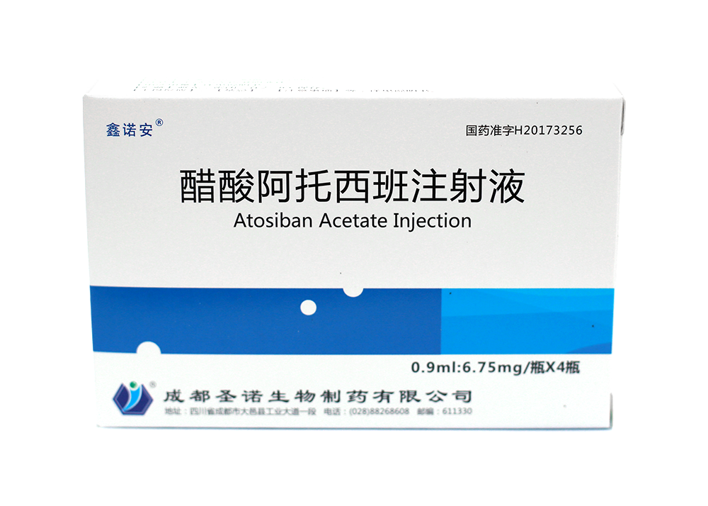 這款由成都圣諾生物制藥有限公司生產(chǎn)的用于推遲即將出現(xiàn)的早產(chǎn)的藥物——鑫諾安@醋酸阿托西班注射液。